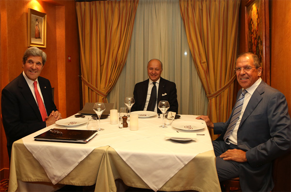 « Punir » le régime syrien –pour ne pas dire le « renverser » –, telle serait la mission de la France, à en croire son président, son Premier ministre et son ministre des Affaires étrangères. Propulsée meilleur allié des Etats-Unis, après le rejet d’une intervention par la Chambre des Communes britannique, Paris a fait sien tout le logiciel néoconservateur américain. La morale plutôt que le droit. La conférence de presse de Laurent Fabius du 7 septembre, aux côtés de son homologue américain John Kerry, fut de ce point de vue tout à fait révélatrice. D’abord, il n’a pas hésité à considérer qu’une attaque serait un préalable à une solution politique, partant du principe qu’elle pousserait le président syrien à négocier. Argument spécieux s’il en est puisque Bachar al-Assad avait donné son accord de principe pour participer à la conférence de Genève 2, tandis que l’opposition exigeait son départ comme préalable. Et c’est ensuite qu’il a exposé l’autre argument, reflétant l’étendue du « virus néoconservateur », pour reprendre la séduisante expression de Dominique de Villepin[1] : « […] il faut regarder ces images, il ne faut pas avoir une discussion juridique […] ».